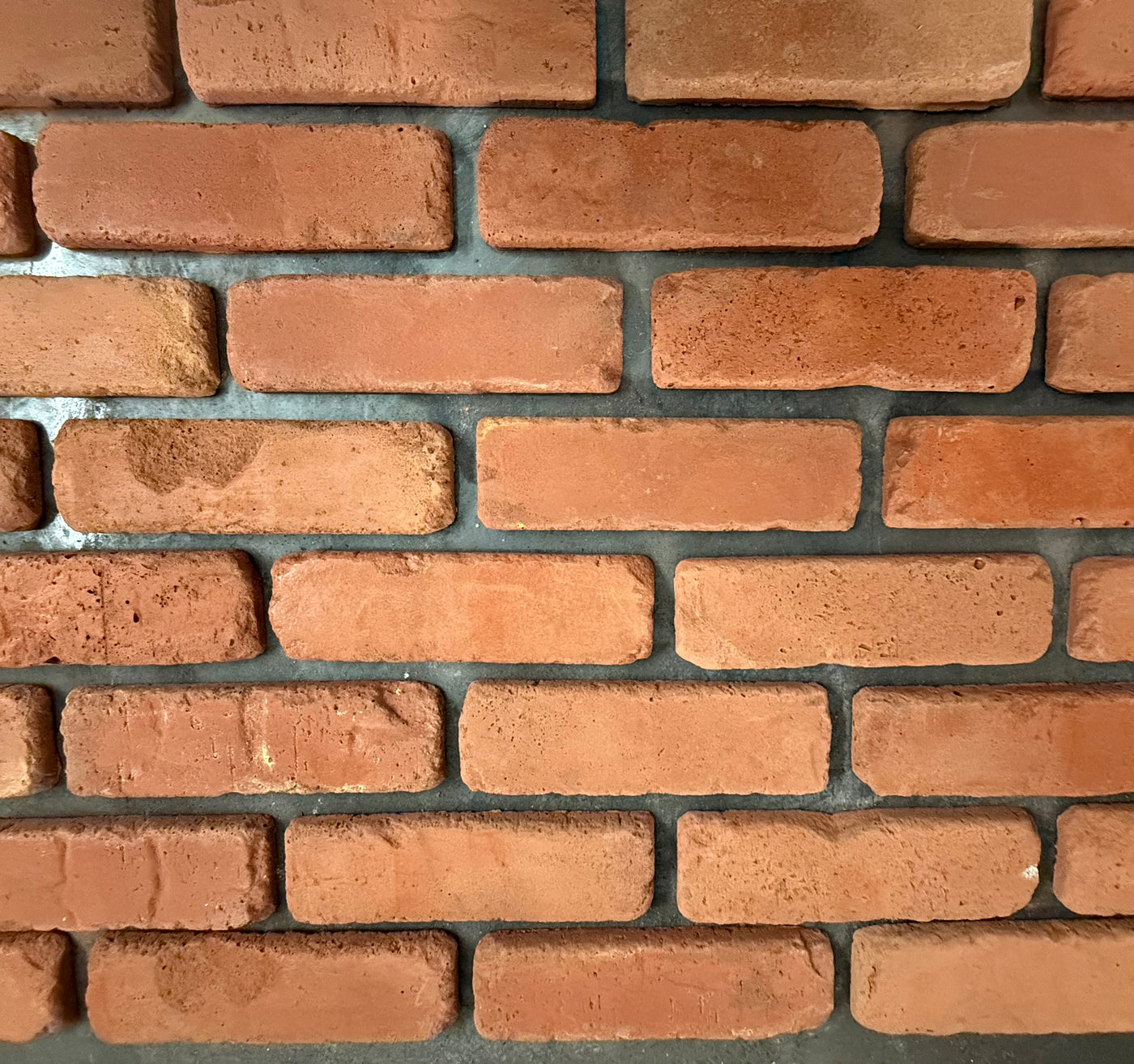 The Maryland Red Brick Slips are handcrafted in the UK. Offering a true brick finish with multiple tones of red and ever so slight white and soot weathering across the face.