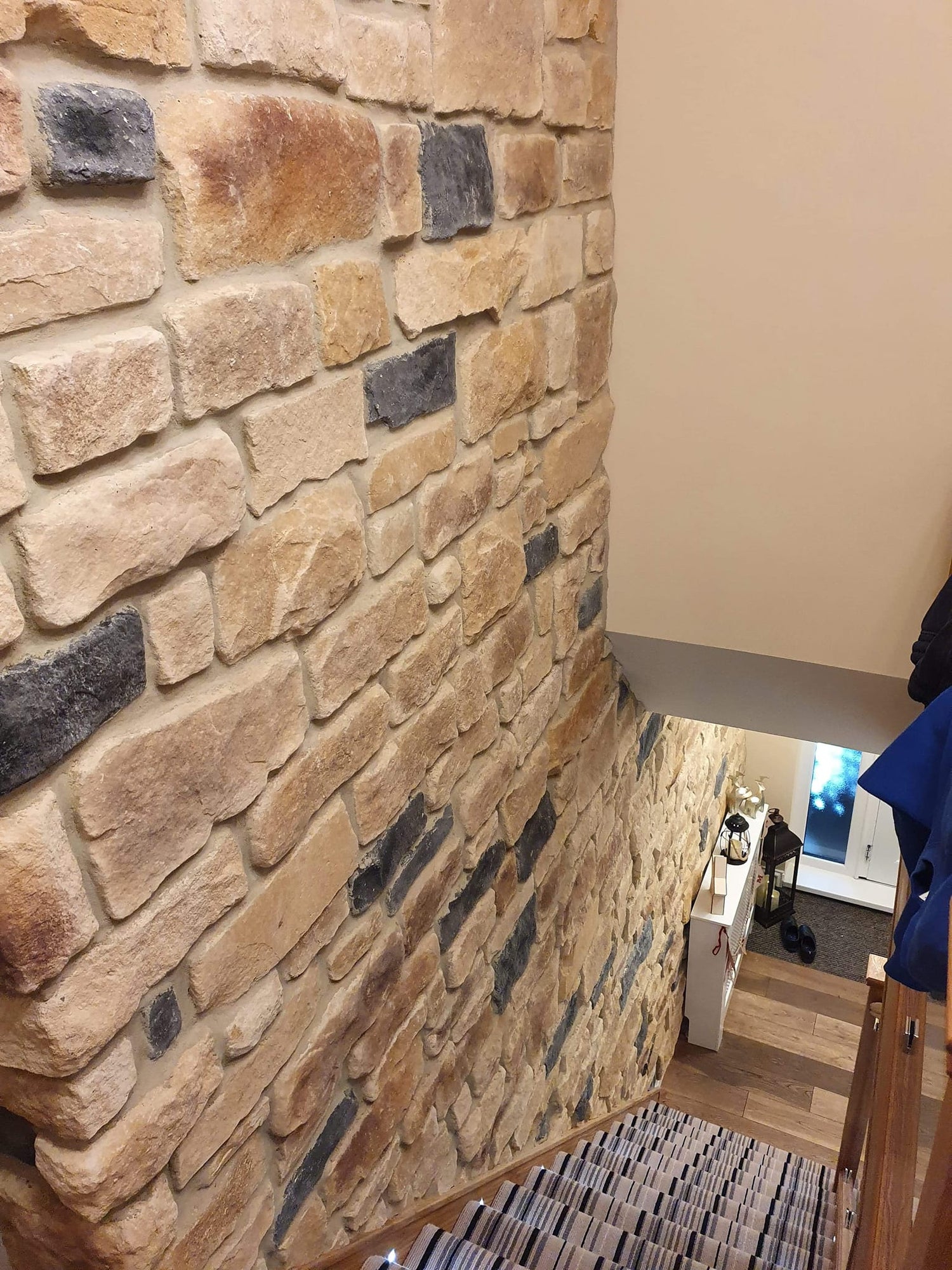 The Antique Blend - Stone Cladding is a mix of buff, weathered, burnt and charcoal stone slips creating a farmhouse'esqe antique blend.