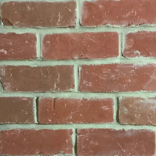 The facing of the brick slip has a mixture of warm reds coupled with a rough brick texture.